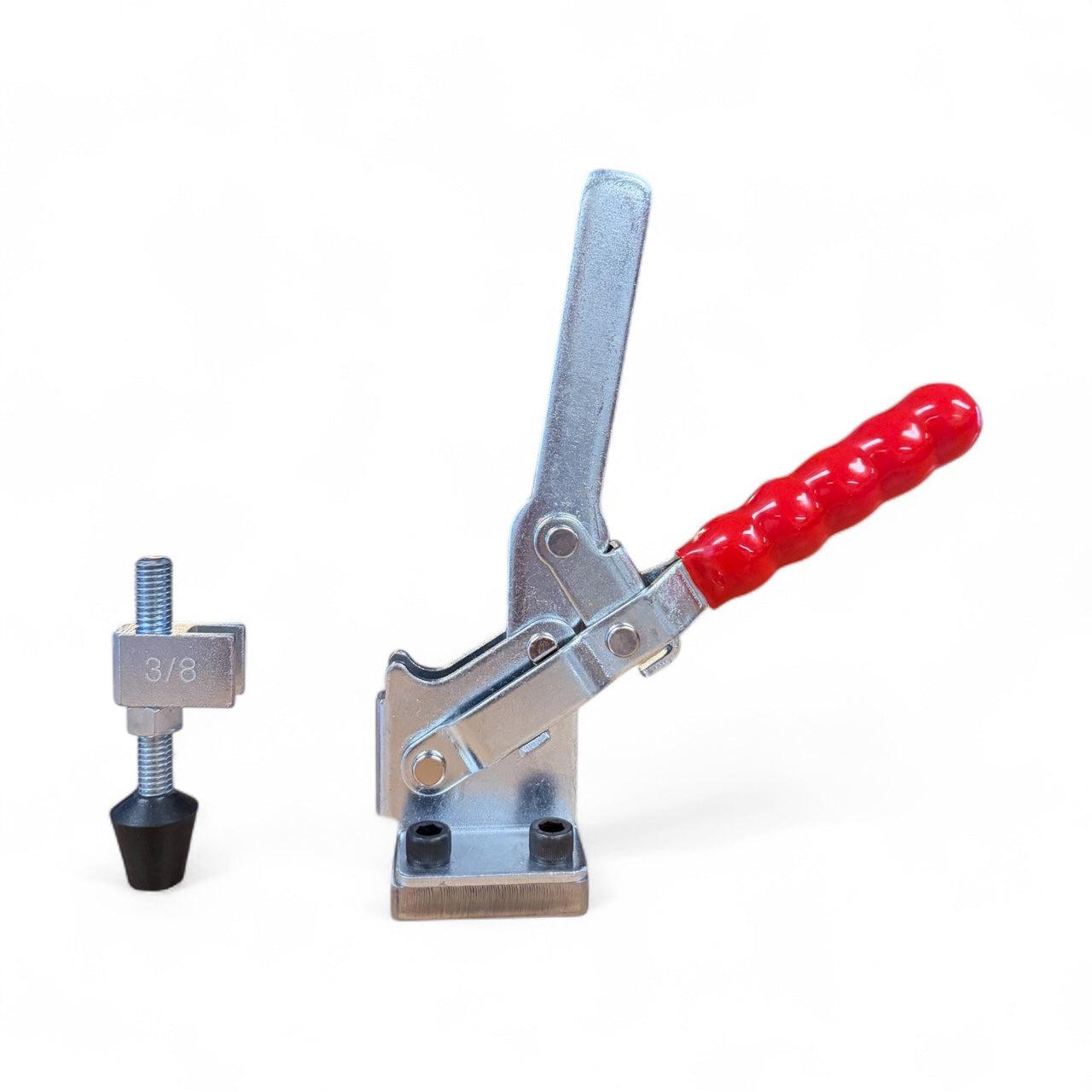 The GH-12275-ERBS and GH-12275-ECBS are vertical solid arm welding toggle clamps engineered for strength, safety, and simplicity. Designed with two highly improved Sherwood attachments, these clamps allow you to easily mount, weld, and customize your setup. Once your clamp is welded in place using the mounting block, you can cut off the extra threads on the external threaded bolt retainer to create a low-profile, snag-free design—keeping your workspace safe and efficient.